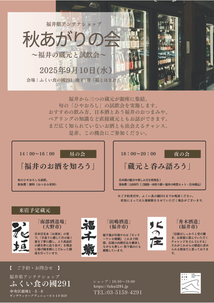 新秋のイベントが開催決定いたしました🎑今回、福井県の蔵元が銀座に来店します!